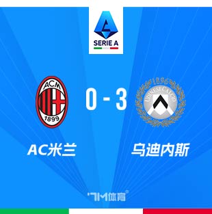 AC米兰主场0-3惨败乌迪内斯 遭遇联赛两连败