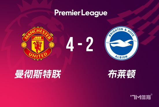 全场比赛结束,最终曼联4-2布莱顿。