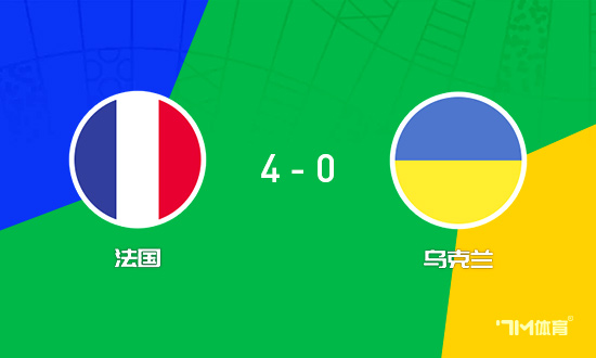 下半场伤停补时4分钟,全场比赛结束,最终法国队4-0乌克兰。