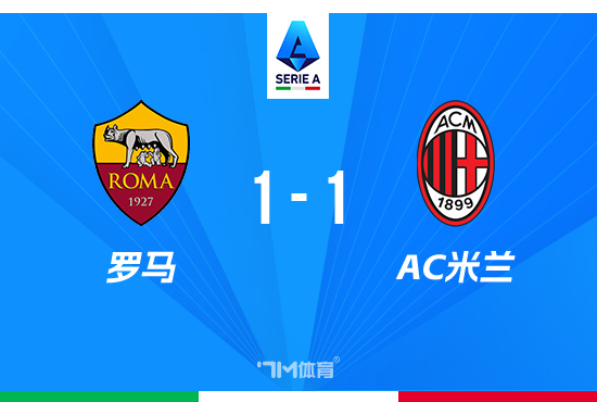 下半场补时4分钟。最终全场比赛结束,罗马1-1米兰。